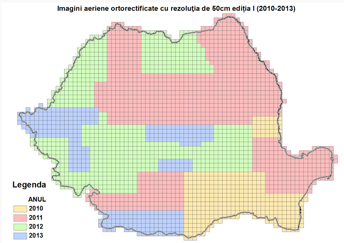 Tip de harta: Imagini aeriene ortorectificateDenumire produs: Imagini aeriene ortorectificate cu rezoluţia de 50cm ediția I (2010-2013)