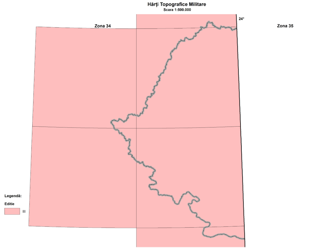 Hărțile topografice militare la scara 1:500.000 sunt singurele care acoperă întreaga țară pentru toate edițiile.