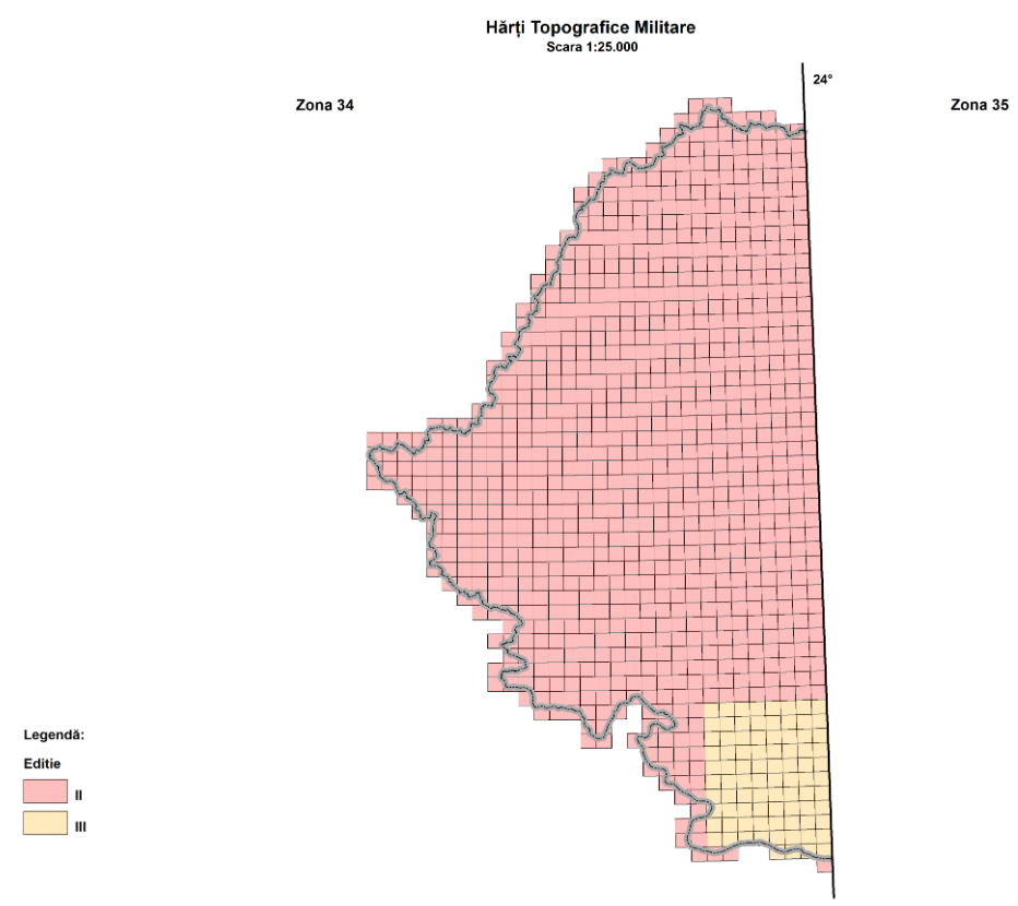 Grila conține contururile secțiunilor hărților topografice militare la scara 1:25.000 la nivel național.