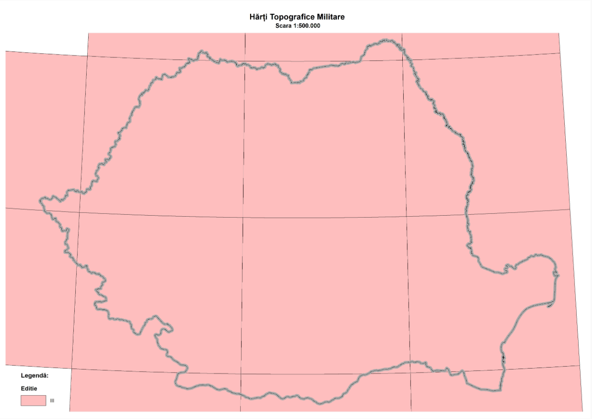 Grila conține contururile secțiunilor hărților topografice militare la scara 1:500.000 la nivel național.