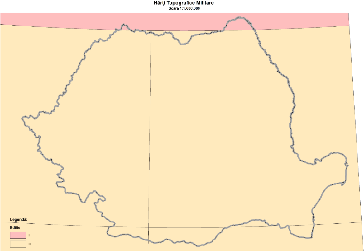 Grila conține contururile secțiunilor hărților topografice militare la scara 1:1.000.000 la nivel național.