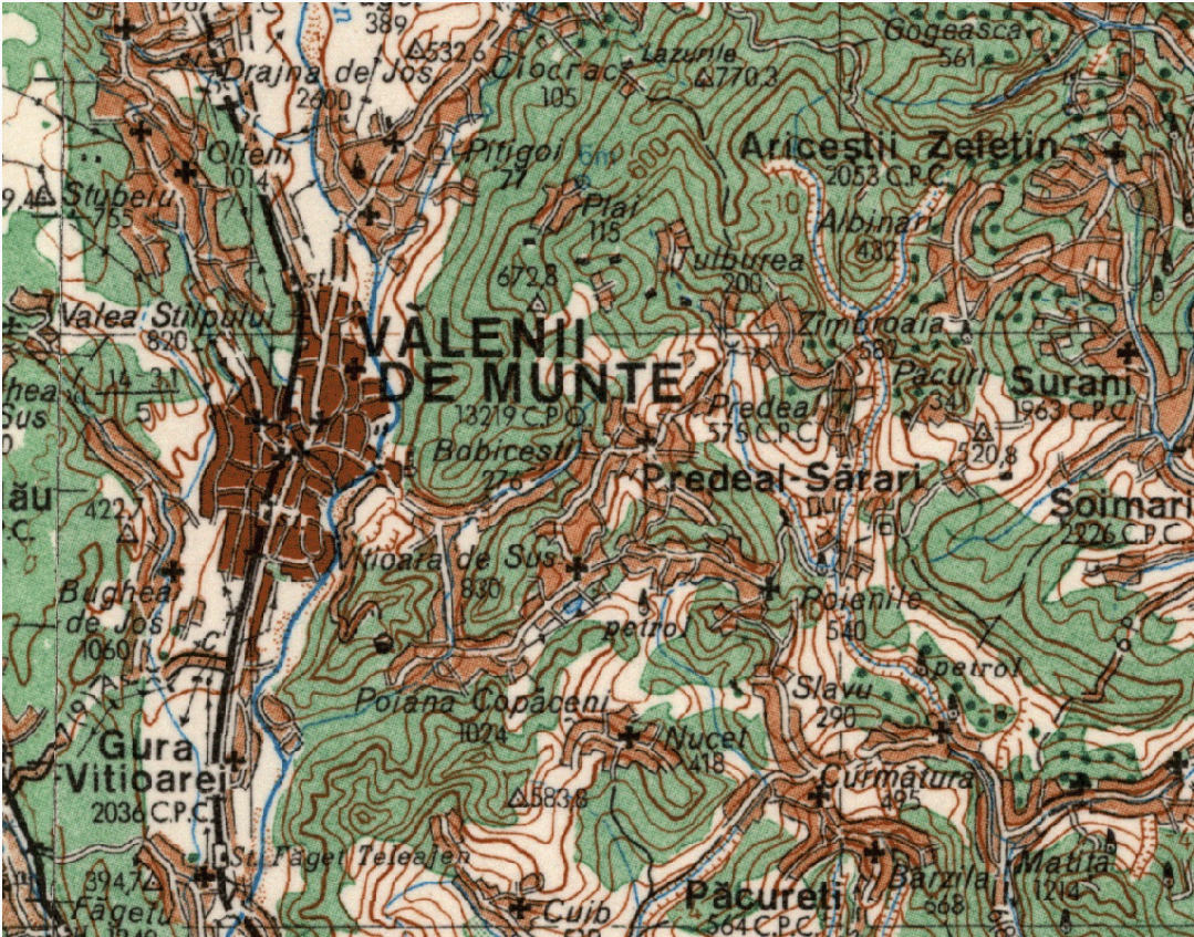 Echidistanța curbelor de nivel este de 40 m în zone de șes și deal și 80 m în zone de munte iar precizia în poziție planimetrică a detaliilor și contururilor în raport cu lungimea lor pe materialele cartografice este de ±0.2mm. Pentru o reprezentare mai plastică a formelor de teren se admite deplasarea curbelor de nivel în raport cu imaginea lor de pe materialele cartografice astfel: în regiunile de șes până la ¼ iar în regiunile muntoase până la ½ din echidistanța curbelor de nivel normale.